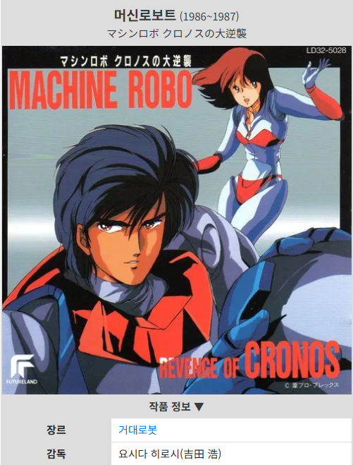 《머신로보 크로노스의 대역습》은 1982년 반다이의 상업적 기획 속에서 탄생했지만, 단순 완구 홍보물의 한계를 넘어선 작품입니다. 구조적으로는 불완전하지만, 바이캄프의 스타일리시한 액션, 가르디의 비극적 라이벌 구도, 하이리비드를 둘러싼 퀘스트 서사는 캐릭터성과 감정선의 힘으로 매니아적 지위를 확보했습니다. 완구 애니메이션과 서사 지향 드라마 사이에서 줄타기한 이 작품은, 80년대 로봇물의 상징적 사례로 지금까지도 기억되고 있습니다.