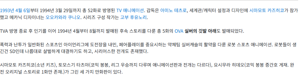 SBS에서 '미래영웅 아이언 리거'로 방영되었던 질풍 아이언 리거의 속편 '실버의 깃발 아래'는 원작의 인기 캐릭터 마하 윈디를 전면에 내세워 새로운 서사를 전개합니다. 로봇 성능과 폭력으로 점철되었던 아이언 리그 판에서 진정으로 중요한 것은 팀과 페어플레이 정신이라는 메시지를 다시 한번 강조하는 이 작품은, 단순한 속편을 넘어 원작의 주제 의식을 재확인하는 리마인드 텍스트로서 의미를 지닙니다.